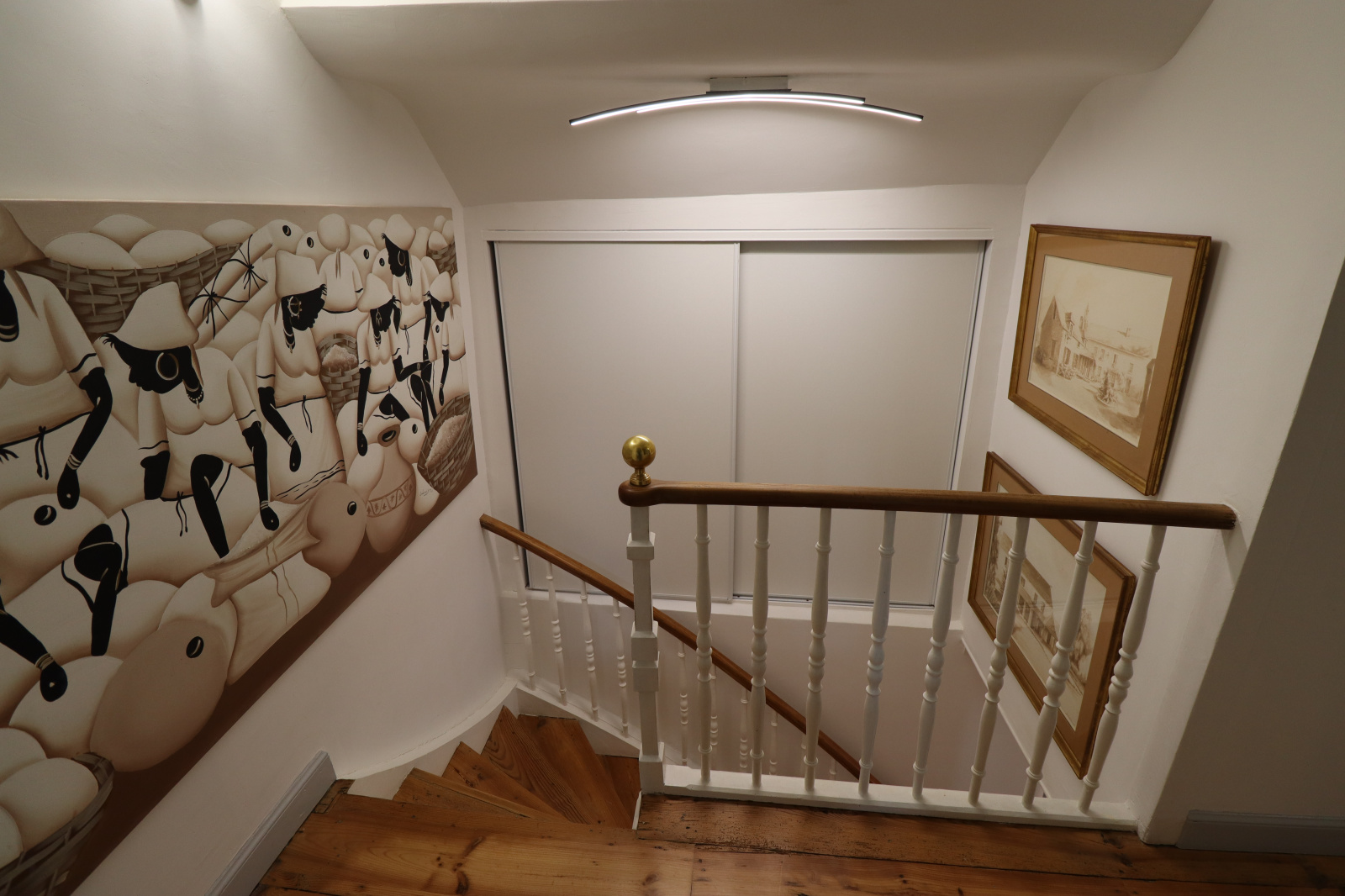 Un bel escalier bois vous conduira au niveau supérieur où se trouve un espace nuit tout aussi élégant, aménagé d’une chambre, d’un espace dressing, d’un bureau et d’une suite parentale.